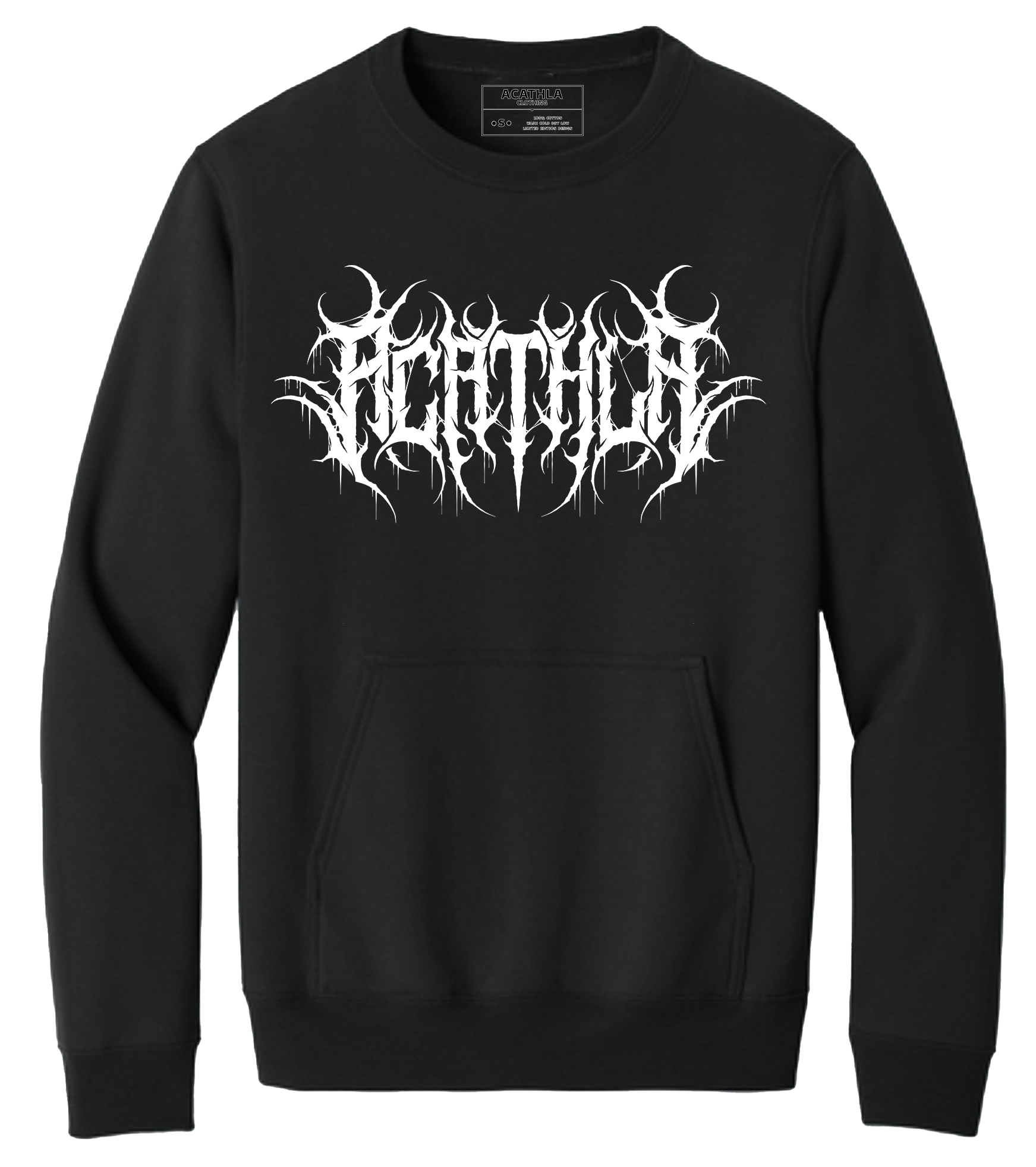 The Acathla Metal Crewneck combines durable metal-inspired design elements with bold branding, creating a unique statement piece. Featuring a distinctive logo that embodies the brand's confident attitude, this crewneck is crafted to stand out while offering everyday comfort. Perfect for those who want to wear their style and identity with expert flair.